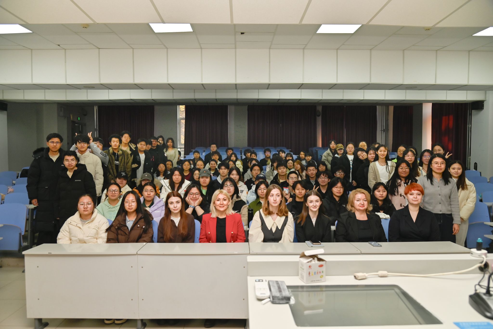 当日下午,访华团代表赴我校盛乐校区,为外国语学院俄语系全体学生举办了专题讲座。莫斯科国立师范大学数字教育首席专家安吉丽娜·戈里亚切娃系统梳理了莫师的发展脉络与时代变革;莫斯科国立语言大学副教授亚利山德拉·沙哈耶娃从文学与文化视角出发,深度解读了“先例文本”的独特价值及其经典人物塑造。讲座现场,学生与专家积极互动。讲座结束后,俄方代表与外国语学院院长赵晓军就学生交流、文化研究等合作领域进行了更具针对性的座谈,为未来的合作奠定基础。