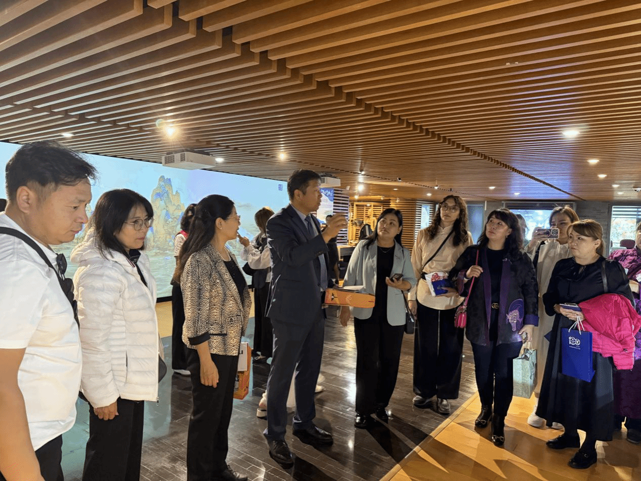 10月14日上午,访华团到访教育部中外语言交流合作中心参观文化体验中心。在沉浸式体验中,访华团成员亲身感受了中国古代四大发明、京剧、茶艺、传统乐器、中医、武术等博大精深的中国传统文化项目。通过直观的互动与聆听讲解,各位蒙古国教育工作者对中国文化的深厚底蕴与独特魅力有了更加鲜活和深刻的认识。