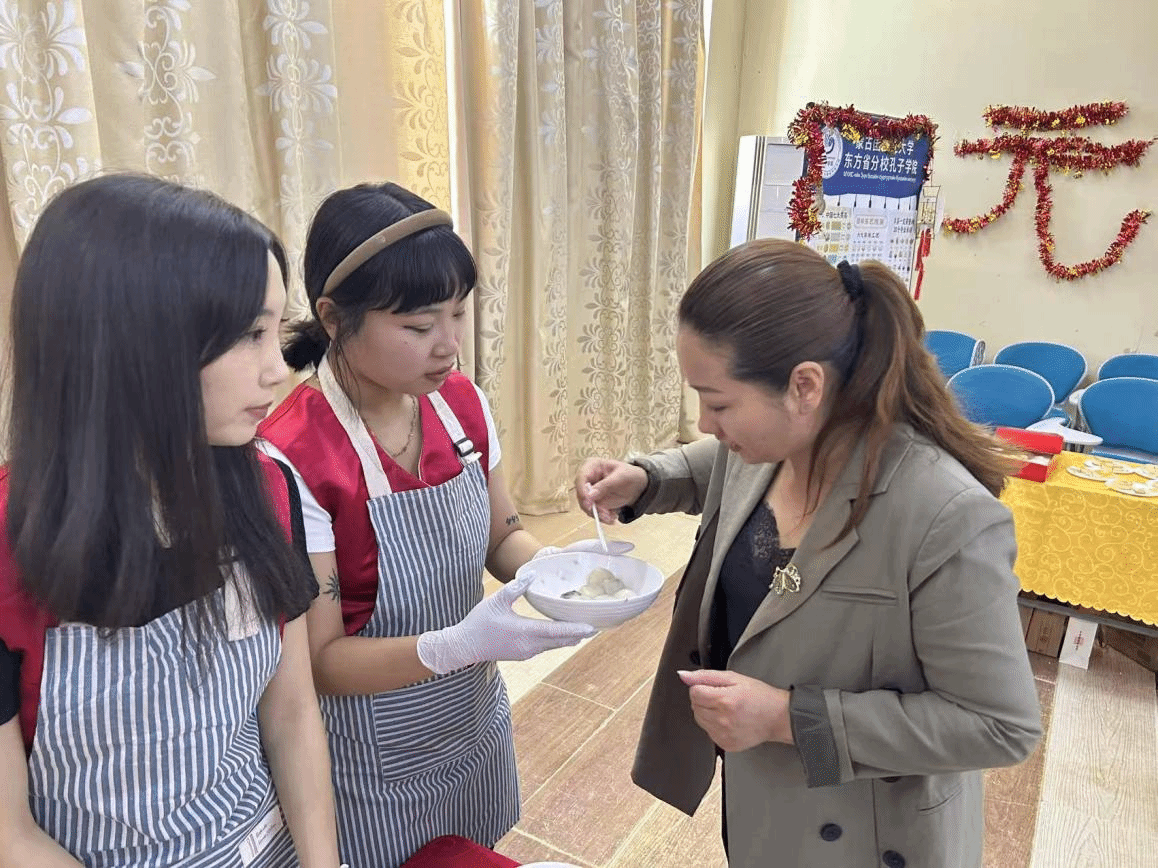 公派教师尚晓烨带领同学们亲手揉面、包馅、搓圆,在欢声笑语中体验传统节日美食文化。当一碗热气腾腾的元宵端上桌,甜在口中,更暖在心里。“团圆”在这一刻变得格外真实而生动。